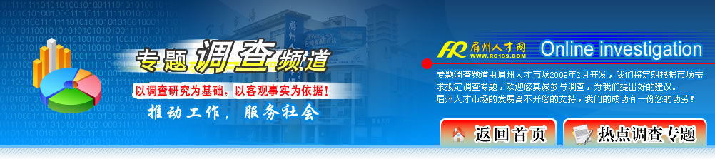 眉山人才專題調(diào)查頻道,您的誠(chéng)信參與,是對(duì)我們的最大支持!