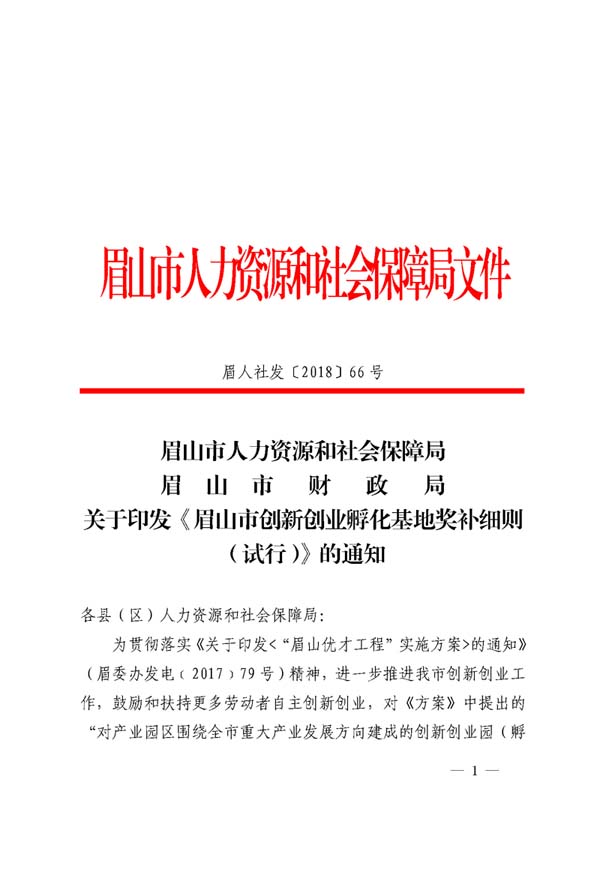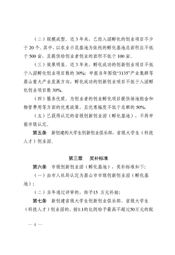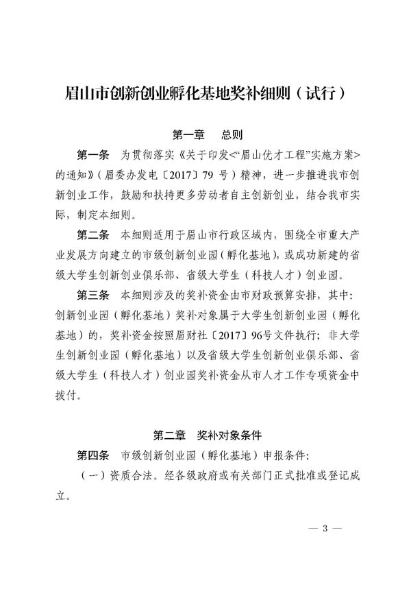 眉山市創(chuàng)新創(chuàng)業(yè)孵化基地獎補(bǔ)細(xì)則(試行)
