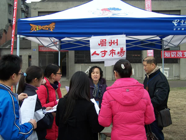 2007年12月31日上午10時(shí),眉州人才市場與眉山職業(yè)技術(shù)學(xué)院聯(lián)合舉辦的“2008屆畢業(yè)生雙選會”隆重開幕,此次盛會是眉州人才市場與眉山職業(yè)技術(shù)學(xué)院為解決應(yīng)屆畢業(yè)生就業(yè)的重大舉措,推進(jìn)了該校畢業(yè)生就業(yè)工作,促進(jìn)畢業(yè)生充分就業(yè),為用人單位和畢業(yè)生提供一個(gè)雙向選擇的平臺,此次盛會有近150家招聘單位蒞臨招聘,2000余名求職者到會求職。